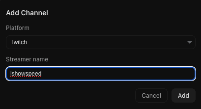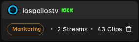 Record and review channels across leading platforms like Twitch and Kick — all through a single dashboard.